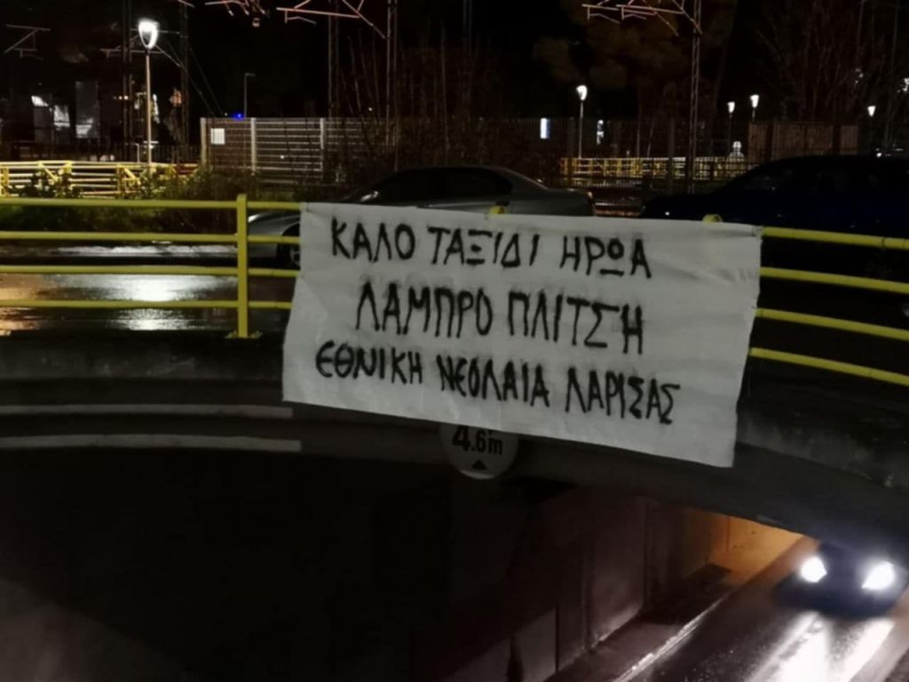 Σημείωση: ευτυχώς που υπάρχουν Συλλογικότητες Πατριωτών όπως η Εθνική Νεολαία Λάρισας που ανήρτησε πανό για τη μνήμη του Λάμπρου Πλίτση σε κεντρικό σημείο της πόλης στην αερογέφυρα της Φαρσάλων!