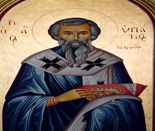 Σύμφωνα με τον συναξαριστή, ο Άγιος Υπάτιος ήταν μορφή από εκείνες που δόξασαν την Εκκλησία στους πρώτους αιώνες της και αγωνίσθηκαν για το θρίαμβο του χριστιανισμού και της Ορθοδοξίας. Ήταν επίσκοπος Γαγγρών στα χρόνια του Μεγάλου. Κωνσταντίνου και συμμετείχε στην Α’ Οικουμενική Σύνοδο στη Νίκαια (325 μ.Χ.), κατά της πλάνης του Αρείου. Στο ποιμαντικό του έργο, εξακολούθησε να διδάσκει και να καθοδηγεί το ποίμνιο του, αλλά κυρίως αντιμαχόταν τις αιρέσεις, και ιδιαίτερα την αίρεση των Ναυτιανών.