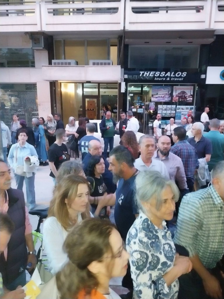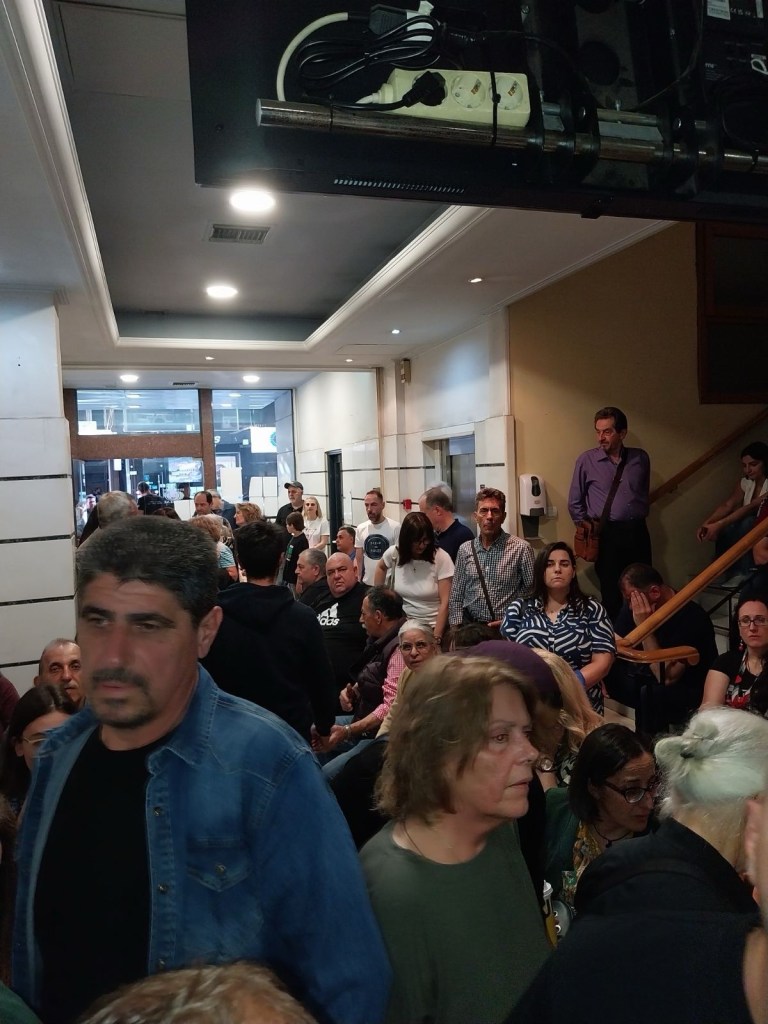 Η αίθουσα, αλλά και όλοι οι διάδρομοι του Επιμελητηρίου, γέμισαν ασφυκτικά με κόσμο, όπως και η οδός Παπαναστασίου στην οποία η τροχαία αναγκάστηκε να διακόψει την κυκλοφορία για περίπου 1,5 ώρα!